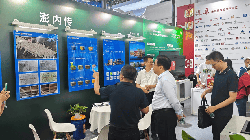 北京澎內(nèi)傳公司展出了全球領(lǐng)先的混凝土滲透結(jié)晶自愈合技術(shù)以及系統(tǒng)產(chǎn)品,展板上生動形象的展現(xiàn)出滲透結(jié)晶的技術(shù)原理、電鏡下的結(jié)晶形貌和實(shí)效工程照片等;實(shí)物水池模型與試塊直觀地看到結(jié)晶自愈合后的功效。澎內(nèi)傳先進(jìn)的滲透結(jié)晶科技不僅能從根本上解決混凝土結(jié)構(gòu)的滲漏水頑疾,還能提高混凝土整體的耐久性,延長結(jié)構(gòu)的使用壽命60年。產(chǎn)品低碳環(huán)保,為我國造就高質(zhì)量建筑和可持續(xù)發(fā)展的目標(biāo)提供堅實(shí)的技術(shù)基礎(chǔ)和科學(xué)的安全保障,更好的滿足人們對好房子的需求。